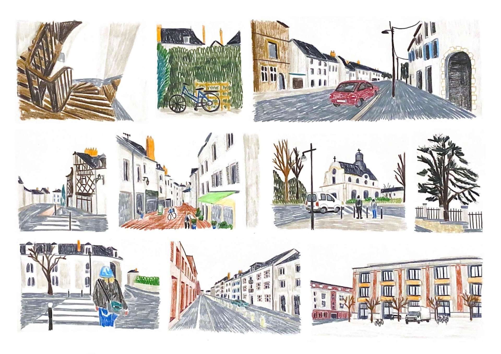 Les élèves de première année de l'École de la nature et du paysage racontent leurs trajets quotidiens, en arpentant la ville de Blois crayon à la main, dans le cadre de leurs enseignements de représentation.